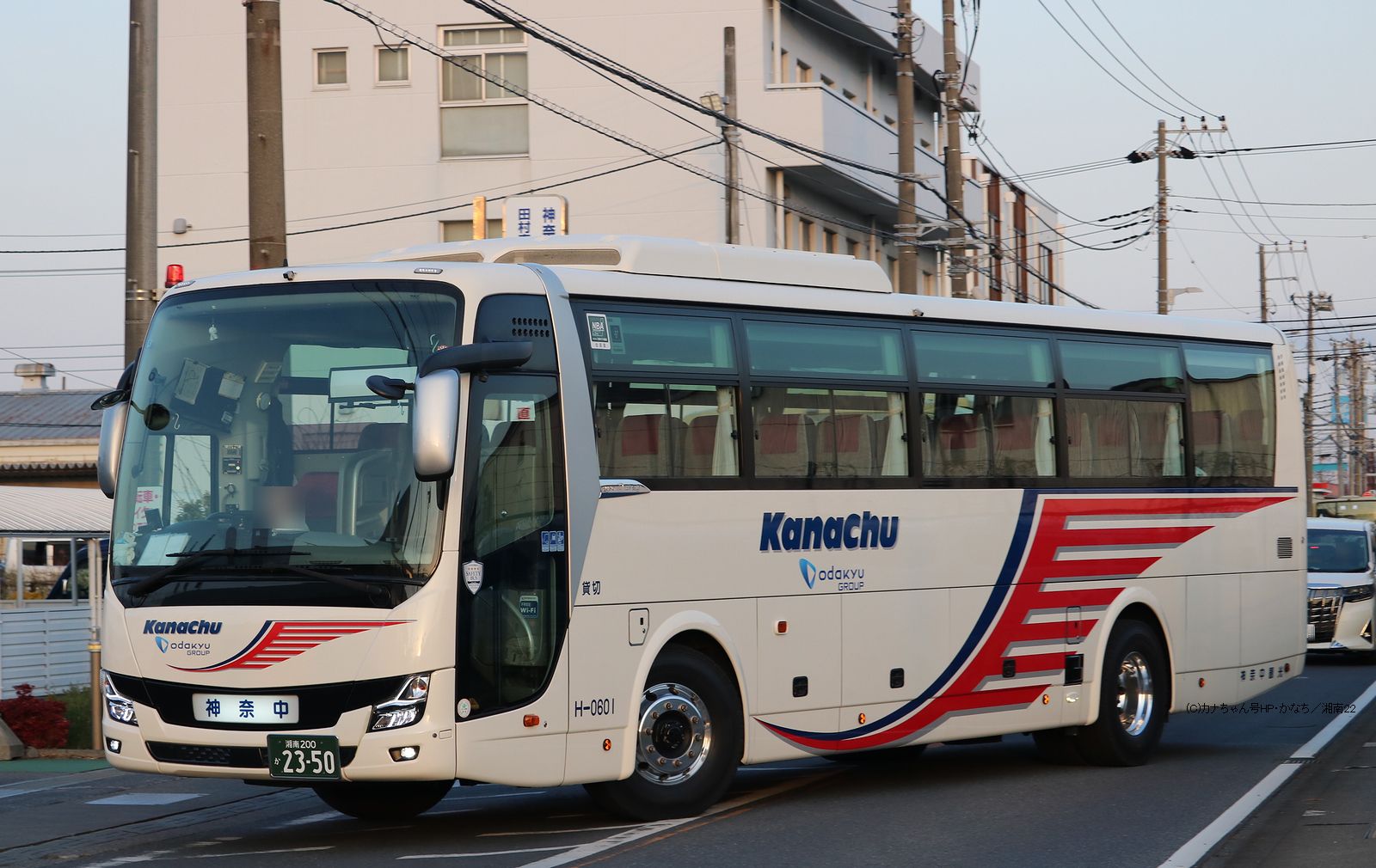 2023年12月投入の三菱2TG-MS06GP(M-0616)です。 2019年型モデルからブラックベルトデザインに変更されたエアロエースですが、 この令和顔とも呼ばれるタイプは神奈中観光では2023年度に一挙19台が増備されたため2TG-代のMS06は27台に、写真のブラックベルトデザインも25台にまで増えています。撮影 けーえる様 |