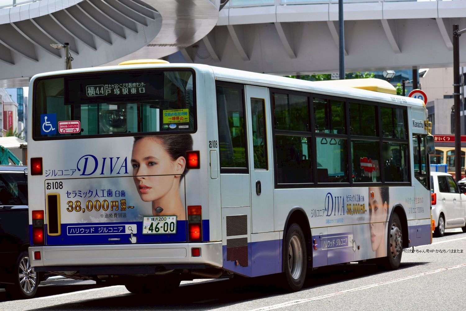 2017年12月に登場した『ジルコニアDIVA』のラッピングです。 人口歯の宣伝内容のようで舞岡だけでも5台に施されているラッピングです。舞岡は2015年式の三菱ふそうQKG-MP38FK(お38)ノンステップバスに施されており、藤沢や大和でも同じ契約が見られます。2021年3月までの契約でした。撮影 ちくわ大明神様 |